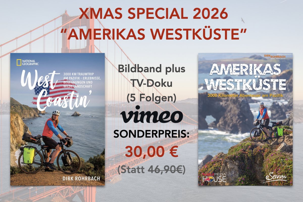 So funktioniert's: Das Special "Im Fluss" besteht aus Buch und der fünfteiligen TV-Doku auf USB-Stick für Euren Smart-TV, Laptop oder Computer. Das Special "Amerikas Westküste" enthält das Buch und die brandneue TV-Serie als Download bei Vimeo.